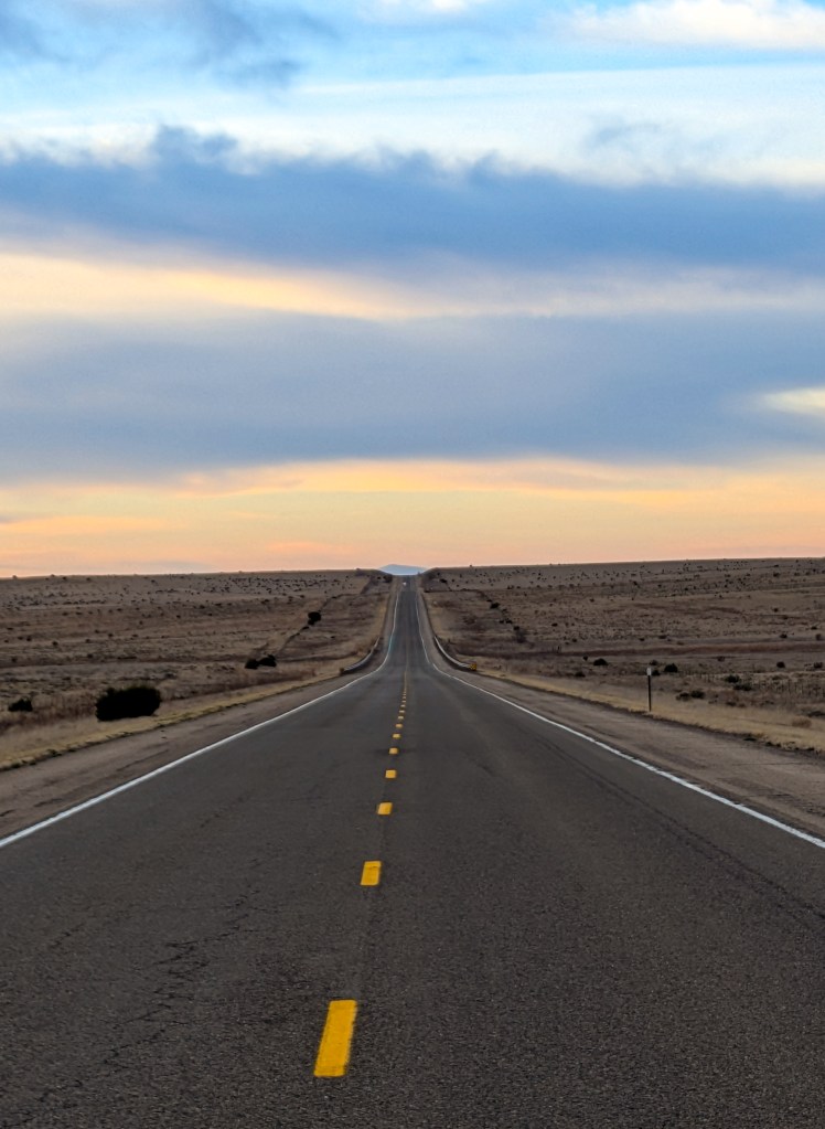From that infinite canvas came one of my favorite shots of the trip: the long, straight road. I told my partner that I needed to find a stretch of two-lane highway where I could stand right in the center—just for a moment—to capture this perspective.