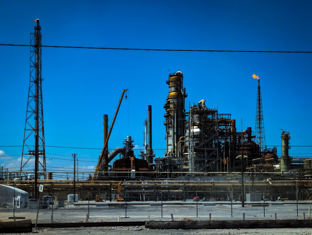 The proximity of the coast to heavy industry is striking. One moment you are gazing at the sea, and the next, the horizon is dominated by the complex geometry of steel towers and tangled pipes—like a scene from a sci-fi film. And just to remind us exactly where we were, we even spotted a wild alligator hanging out right outside the refinery!