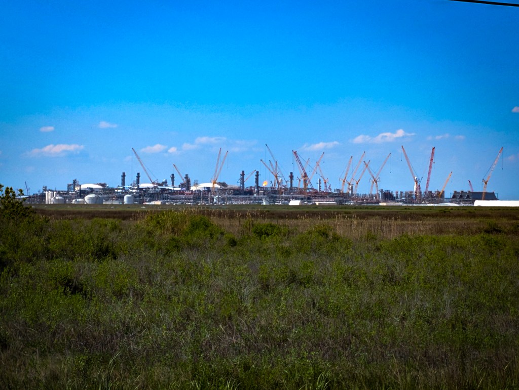 We took a detour to Port Arthur and Sea Rim State Park to officially say hello to the Gulf of Mexico. It was only an hour’s delay, but well worth the time. We expected to see the water, but despite knowing we were near the refineries, we didn’t realize we’d be driving straight through them.