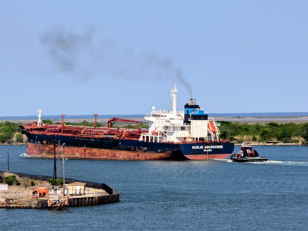 Instead, we crossed the Veterans Memorial Bridge, an engineering marvel in its own right. From its summit, I could see smoke still rising from the Valero Refinery fire—a sobering reminder of how closely industry and nature coexist along this stretch of the coast.