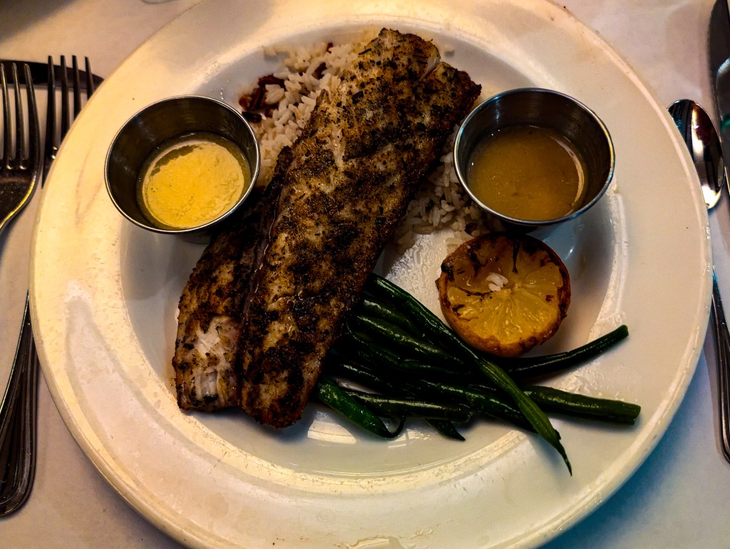 For dinner, we headed to Mr. B’s, and “delicious” doesn’t even cover it. The food was incredible and the service radiated classic New Orleans hospitality. I had the redfish for my entree, which was fantastic, but the real showstopper was dessert.