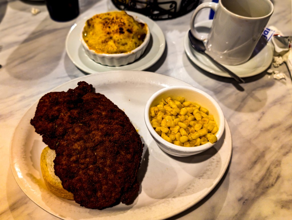 For lunch, we ventured out to Cafe 615. The Lyft ride there was half the fun, as we got to cross a really cool bridge to get to the restaurant. I opted for the fried pork chops, and they did not disappoint—perfectly seasoned and exactly the kind of comfort food you want in NOLA.